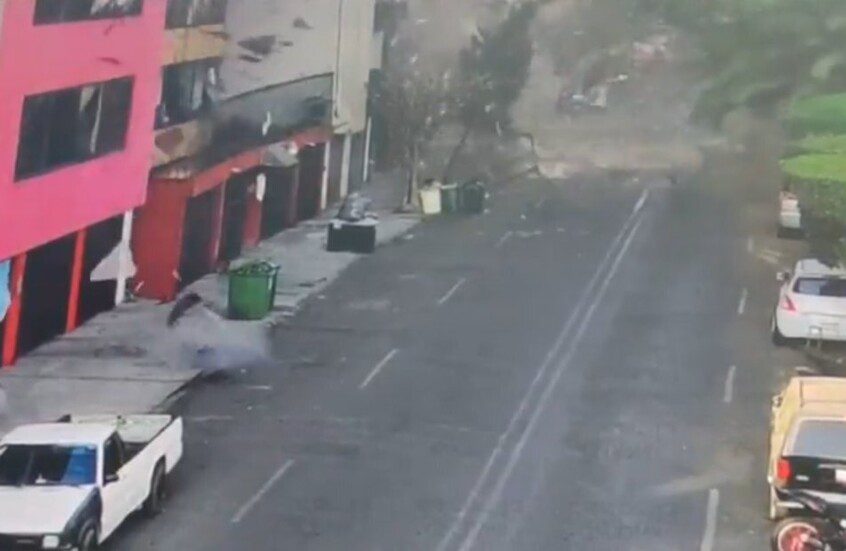 وأظهر فيديو متداول على مواقع التواصل الاجتماعي الموجة الصدمية وهي تكسر النوافذ والحواجز المعدنية وتدمر جزءًا من الطابق الثالث، مسببة انتشار الحطام على الطريق وأضراراً للمركبات المجاورة.