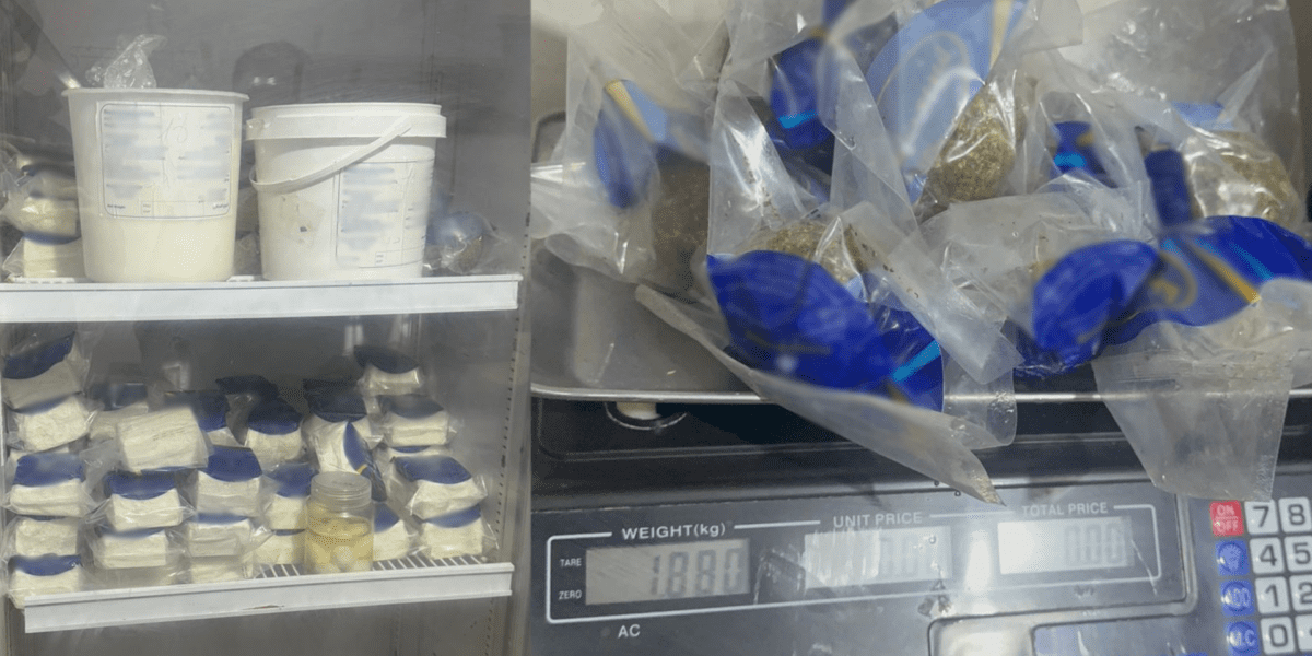 وبتفتيش المكان، تبيّن وجود نحو /80/ قالبًا من الجبنة موضّبة داخل أكياس غير مخصّصة للاستخدام الغذائي، وغير مطابقة للمواصفات والمعايير الصحيّة المعتمدة، فضلًا عن عدم حيازة مالك المعمل أي ترخيص قانوني يجيز له ممارسة هذا النوع من النشاط.