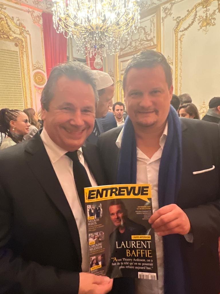 Pour fêter cet événement, co-organisé par Pierre-Alexandre Zucca et Pierre-Emmanuel Metz, de nombreuses personnalités, journalistes, et professionnels des médias étaient présents. À commencer par Laurent Baffie, qui figure en couverture d’Entrevue ce mois-ci, et qui a joué de ses talents de “sniper” tout au long de la soirée pour le plus grand bonheur des convives, qui n’ont pas été épargnés par ses vannes toujours aussi percutantes.